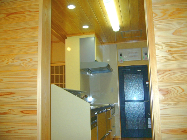 このキッチンは、ダイニング側がすべて収納になっている 優れものです。 和のつくりに 見事マッチ していると思いますが・・・。